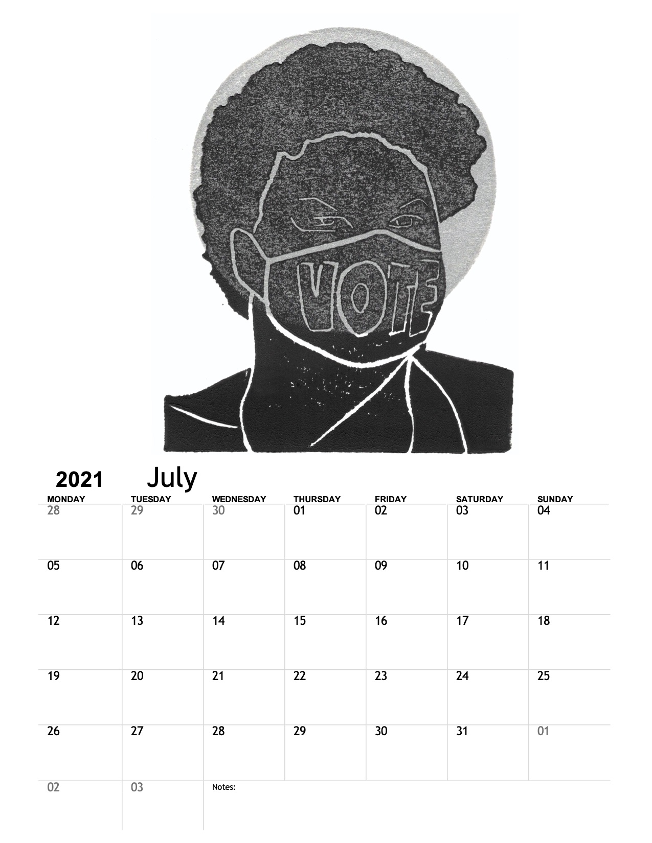 This calendar is a result of a new medium I’ve come to love this year, stamp carving and linocut. If we’d not been at home so much, I’m not sure I would have created these artworks.